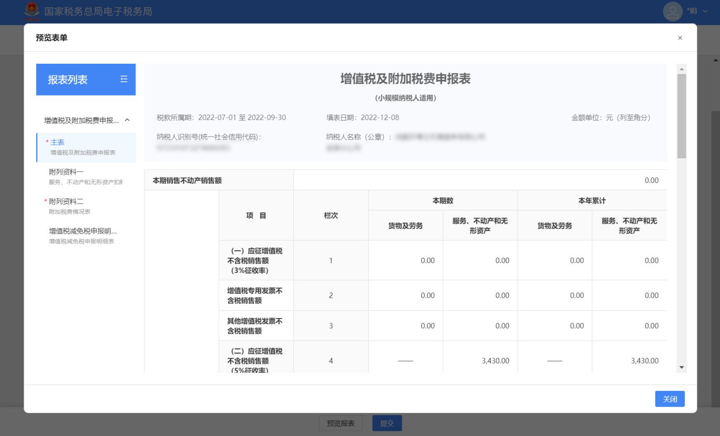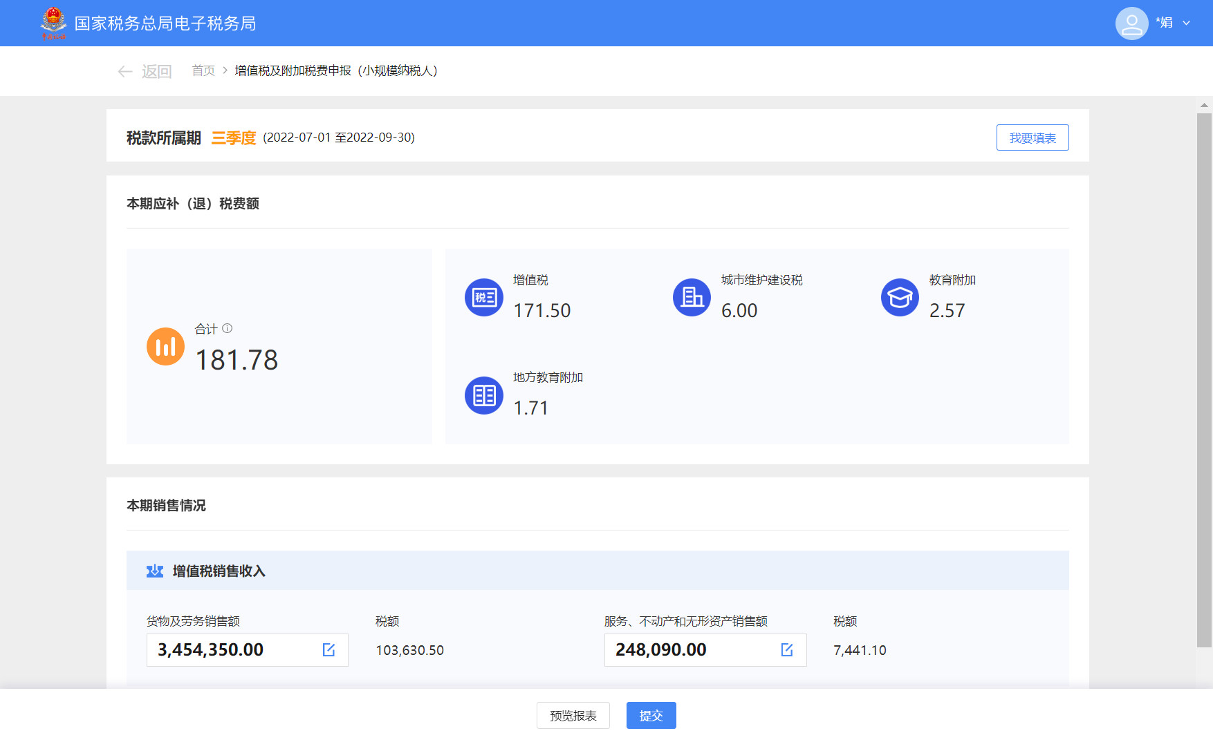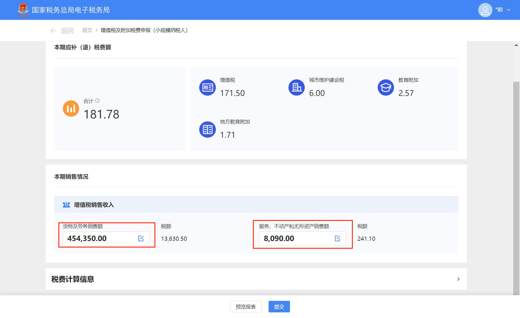 3.若您需申报表预览,可通过点击“预览报表”进行查看明细报表数据,如图6、图7所示: