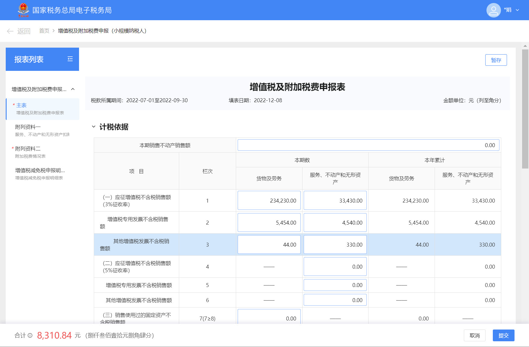 3.当您为应税服务企业或者是混营企业时,在填表式模块里会出现附表一(服务、不动产和无形资产扣除项目明细)的表单。当您为发供电企业且为分支机构企业时,出现电力企业增值税销项税额和进项税额传递单。