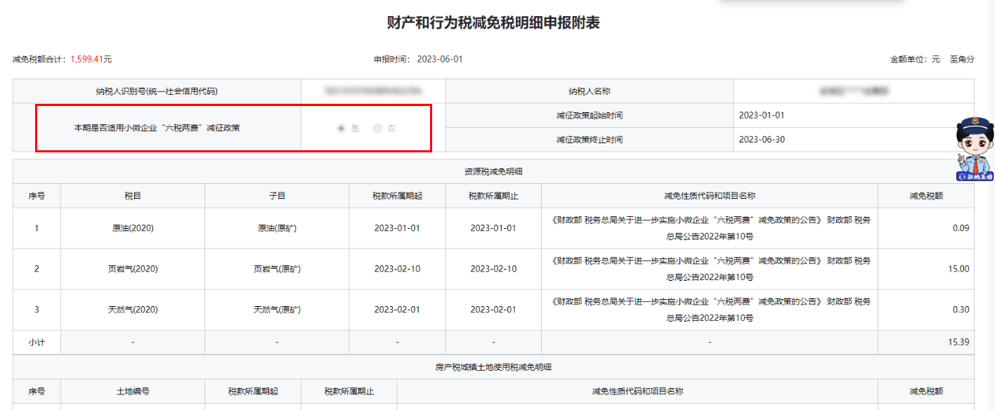 (三)打开“减免税明细申报附表”,自动带出您在税源信息采集的所有减免税信息。